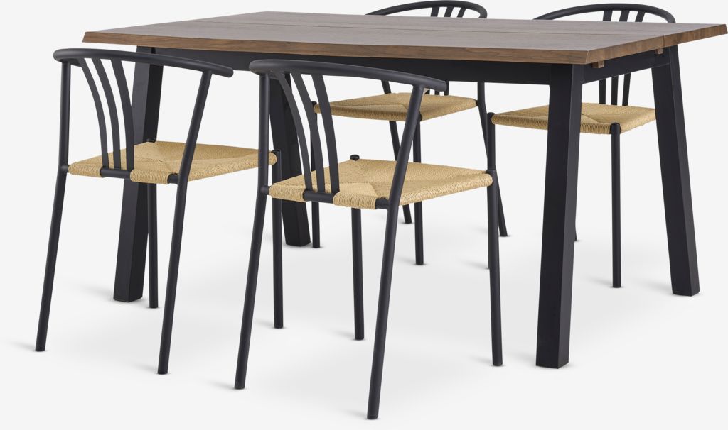 SKOVLUNDE + JYDERUPSKOVLUNDE L160 tafel donker eiken + 4 JYDERUP zwart/naturel