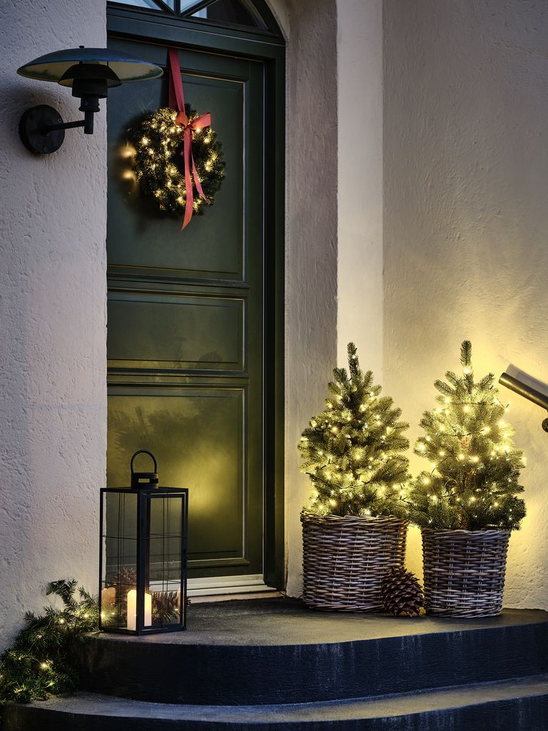 Fint lille juletræ med små lys. Pynter så flot på altanen. Jeg har pyntet mit med små kugler, det er virkelig hyggeligt.
