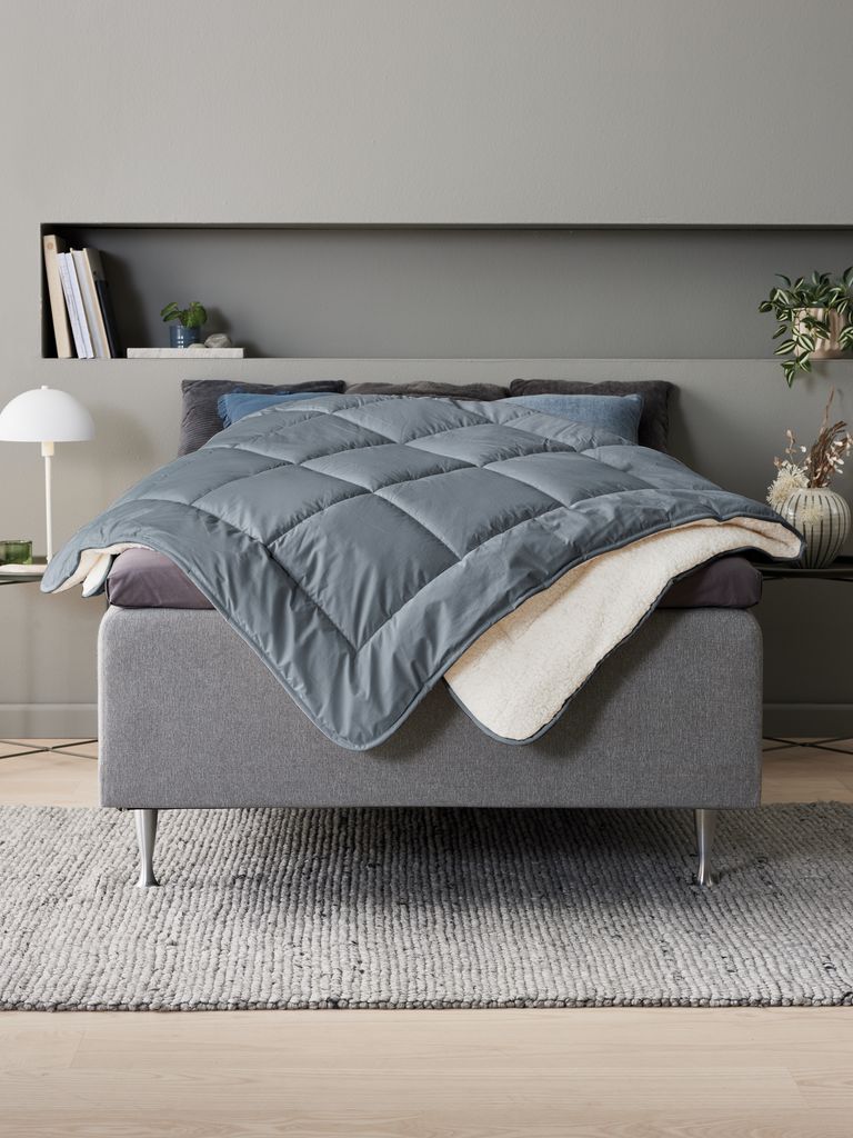 Wollen dekbed 135x200 cm met vulling van 50% wol/50% gesiliconiseerde holle vezel, 810 g. Wol is van nature antibacterieel, temperatuurregulerend en vochtabsorberend. Tijk van 100% katoen en 100% polyester. De tijk is voorzien van zachte sherpa stof. Wasbaar op 40°C.