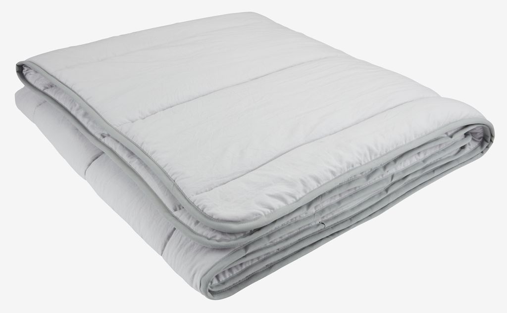 Een heel licht en zacht dekbed. Qua warmte precies goed voor mij!