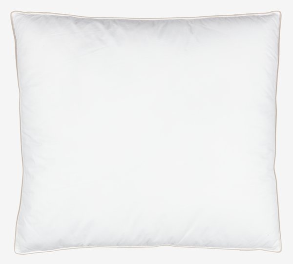 Kussen 60x63/70 cm met 3 kamers en een gebogen rand die ervoor zorgt dat het kussen zijn vormt behoudt en gelijkmatige ondersteunung biedt. Vulling van 100% polyestervezel in de buitenste kamers en 100% eendenveren in de binnenste kamer, 1360 g. Tijk van 100% katoen. Wasbaar op 60°C.