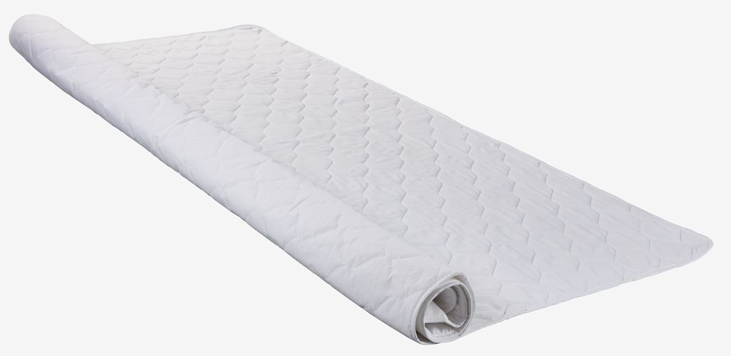 Wasbaar, waterbestendige matrasbeschermer 180x200 cm van hoge kwaliteit met een lichte doorgestikte polyesterlaag (50% gerecycled). Tijk van 100% polyester (65% gerecycled). Elastische hoekbanden.