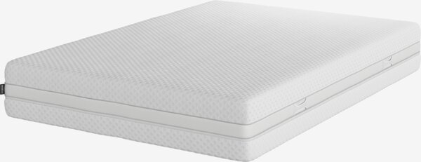 26 cm dik schuimmatras 140x200 cm met 5 comfortzones voor een precieze, optimale ondersteuning. Kern van 21 cm polyetherschuim en 5 cm drukverlagend gelschuim, dat zich aanpast aan je lichaam en overtollige warmte afvoert. Het matras heeft een flexibel gelrooster dat zich aanpast aan de rug en een diepe schouderzone creëert. Dit zorgt voor optimale ondersteuning als je op je rug of op je zij ligt. Wasbare tijk met polyethyleen aan één kant, die een onmiddellijke, kalmerende verkoelende werking heeft.