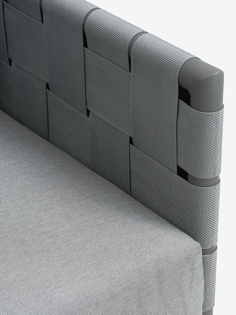 Duurzame polypropyleen banden zijn over het frame geweven om een ondersteunend en comfortabel zitoppervlak te creëren. Polypropyleen banden zijn vochtbestendig en hebben een goede sterkte met een lichte flexibiliteit.