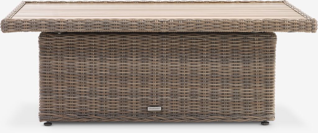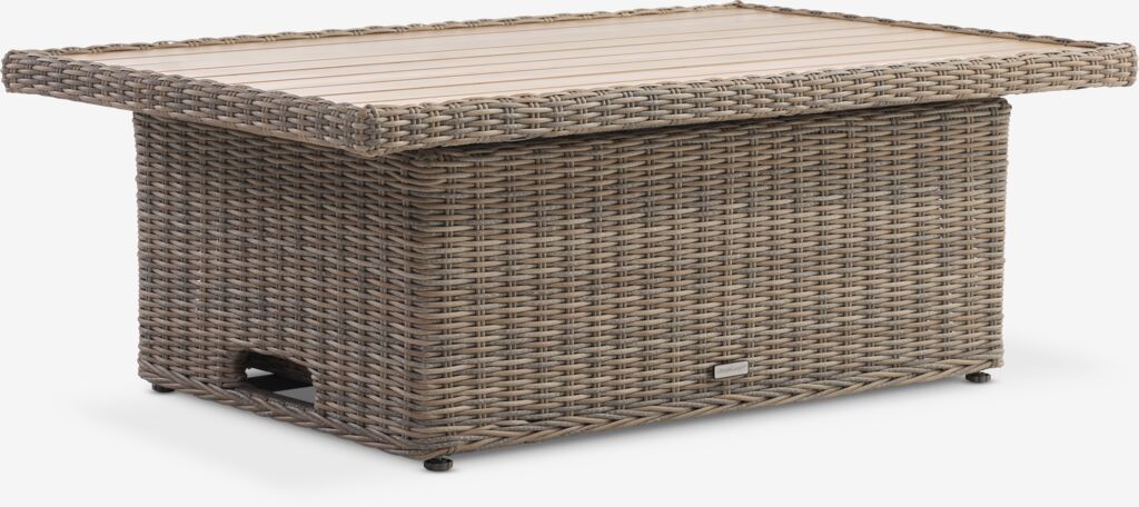 Loungetafel van aluminium en polyrotan. In hoogte verstelbaar. B78 x L122 x H36/66 cm