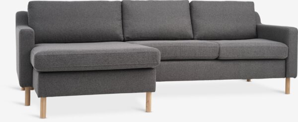 Bank HELLERUP chaise longue grijze stof/naturel eiken